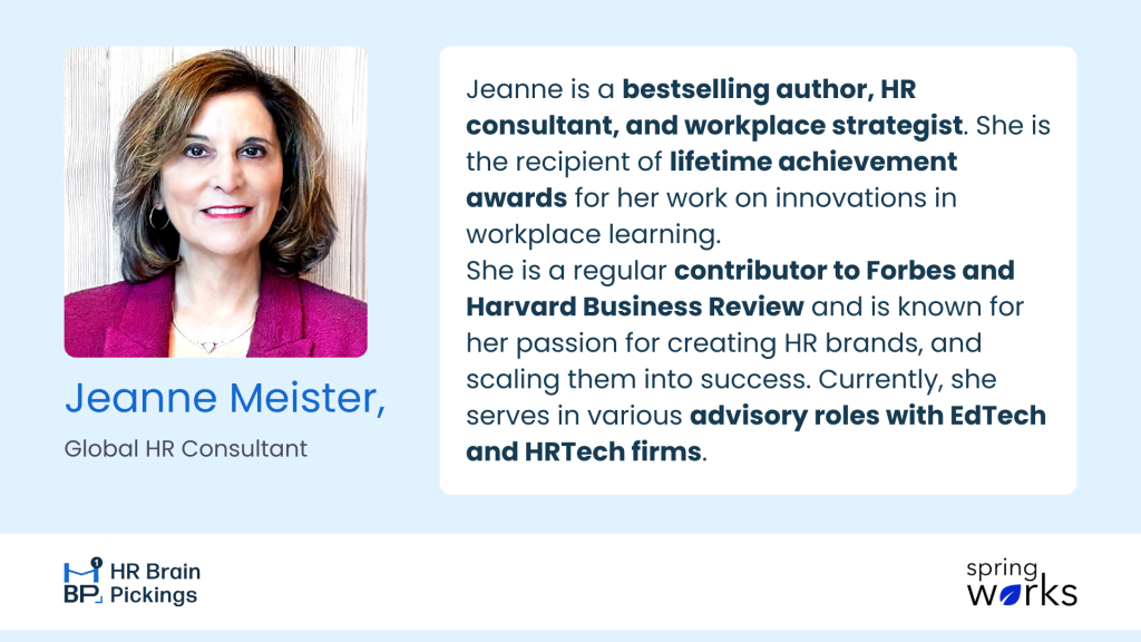 To explore these questions, I spoke with Jeanne Meister, a global HR Consultant who recently authored a compelling article on a similar topic. Her research highlights some critical findings: