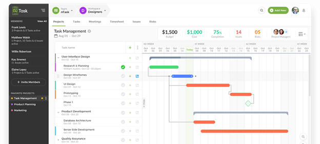 You can now track time worked on your tasks with in-built automatic timer, and send timesheets for approval. nTask modules include meeting management, project planning, to-do list, issue tracking, risk management, Gantt charts, Kanban boards, and more work management feature to track the progress.