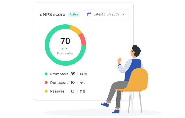 Employee Net Promoter Score or eNPS is a metric that measures employee loyalty and engagement in an organization. The survey used to measure these metrics is called the eNPS survey. To know more, you can read out guide on eNPS.