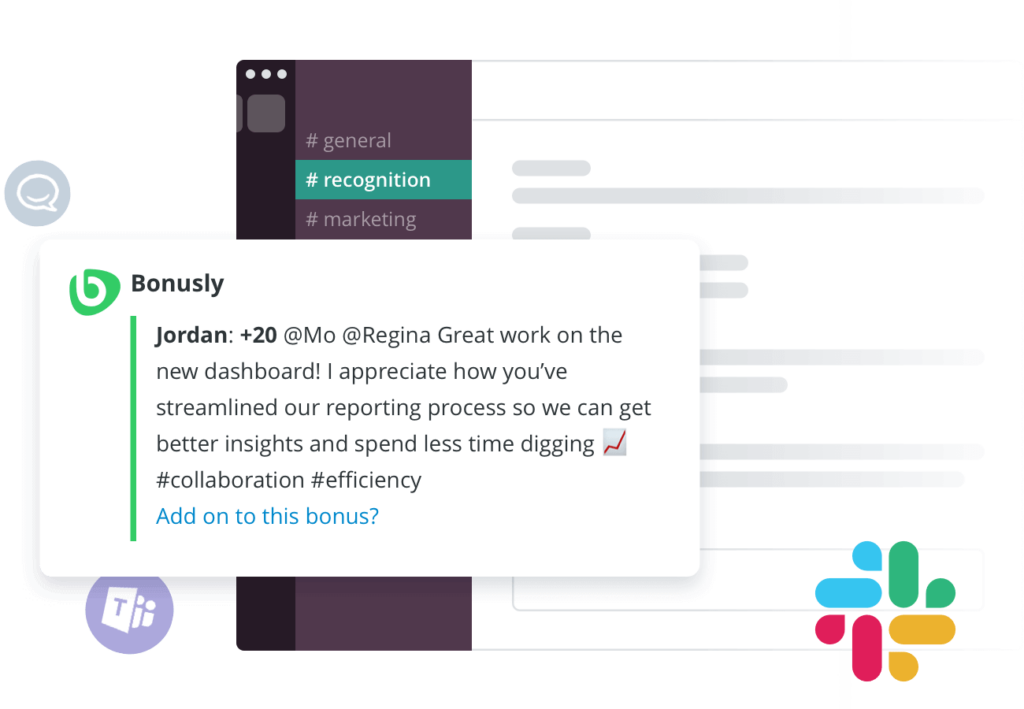 We’ve got you covered! Bonusly app help boost your employee engagement through a recognition structure. Bonusly integrations include platforms like Slack, MS Teams, Google chat, and more.
