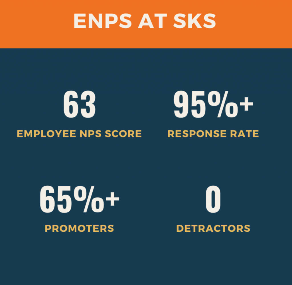 So we sent an eNPS survey with the question – ‘How happy are you working at SKS? How likely will you recommend us to your friend?’