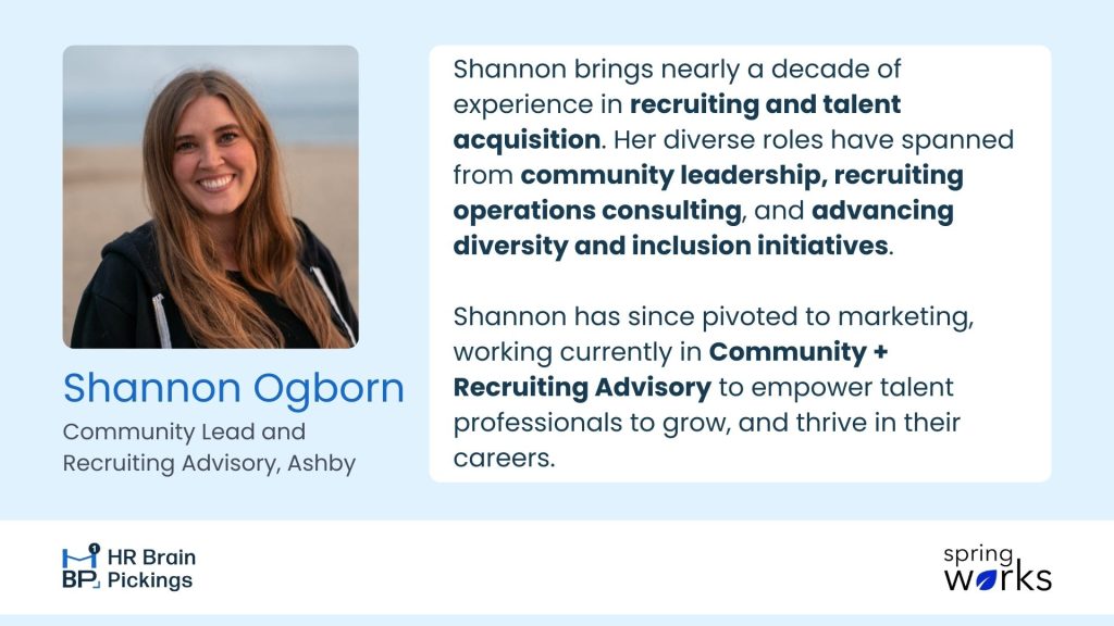 I spoke to Shannon Ogborn, Community Lead and Recruiting Advisory at Ashby to understand what role data plays in improving the recruitment process. Shannon also hosts Ashby’s “Offer Accepted” podcast and manages the Recruiting Operations community, using these platforms to foster discussions and share valuable insights across the industry.