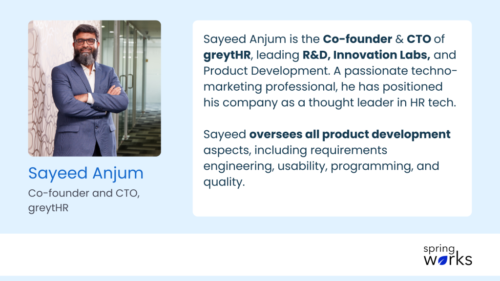 We sat down with Sayeed Anjum, Co-founder and CTO at greytHR, to explore the most pressing trends in HR, the role of AI, and the future of HR management systems (HRMS). With years of experience at the intersection of technology and HR, Sayeed shares actionable insights on leveraging AI, retaining talent, and redefining HR’s strategic role.