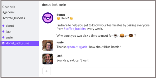 It’s challenging to know your team members while you are working remotely. But Donut slack app makes it easier for remote teams. For example, once a week, Donut will pair you with a random teammate, allowing you to introduce yourself for a coffee-chat to get to know each other.
