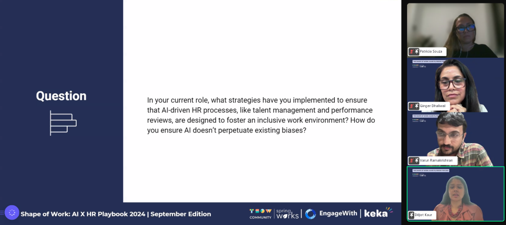 With 60% of attendees not familiar with AI’s role in promoting inclusion, Patricia, Diljot, and Ginger’s insights aimed to bridge that gap by offering real-world examples of AI applications. Moreover, the fact that 54% of organizations were not using AI tools for DEI highlights the untapped potential in this area. The panelists encouraged HR leaders to take proactive steps in exploring how AI could assist in creating more inclusive environments.
